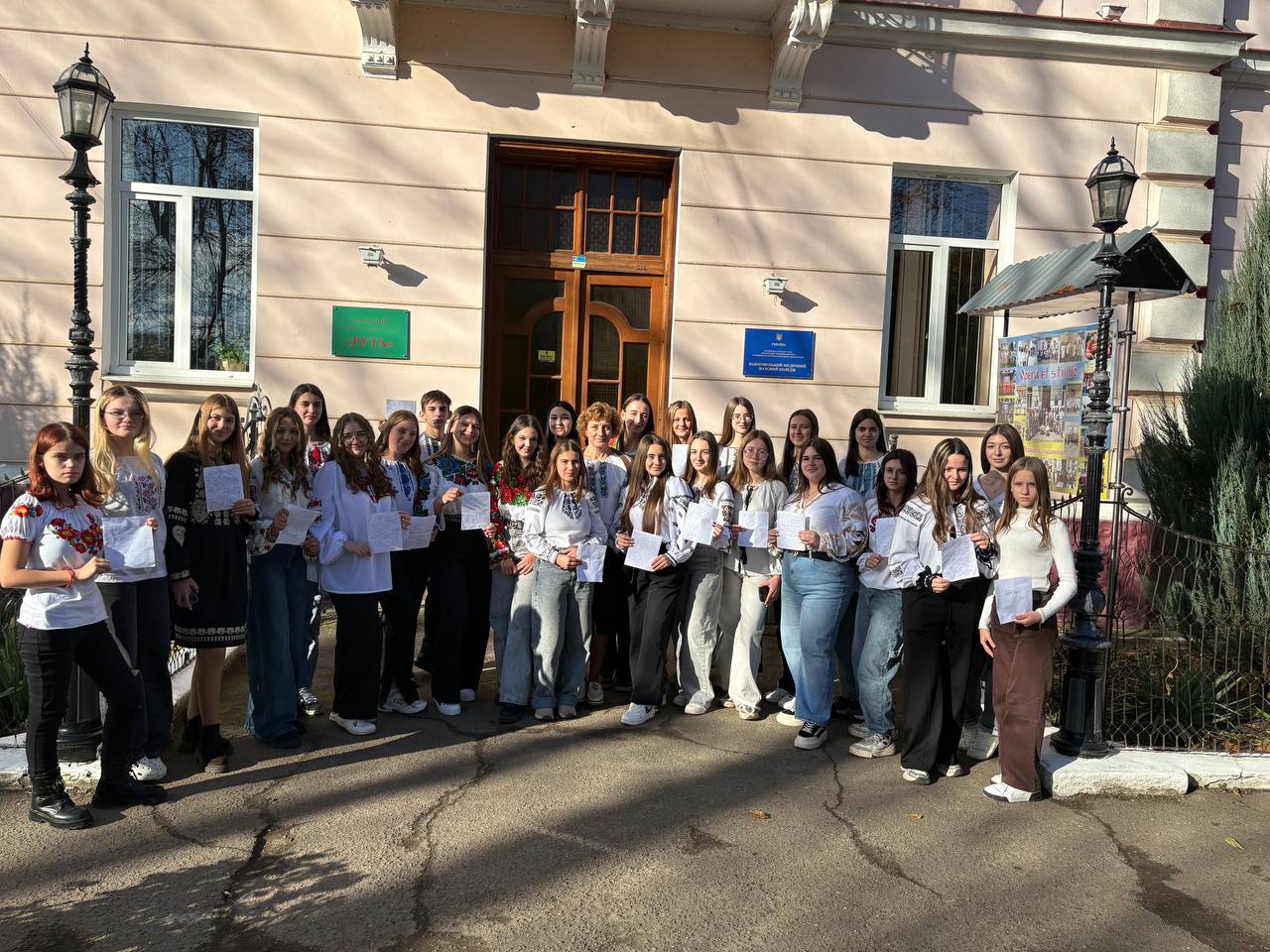В цей день студенти та викладачі коледжу, одягнувши вишиванки долучилися до шляхетної акції — написання Всеукраїнського радіодиктанту національної єдності, адже це гарна можливість перевірити свої знання з української мови та відчути непорушну єдність, яка нам зараз так потрібна. Хтось писав диктант вперше, а для когось це вже другий або третій досвід. У теплій атмосфері учасники ділилися очікуваннями та переживаннями, відчуваючи справжню єдність із тисячами українців, які одночасно по всьому світу писали цьогорічний текст, глибокий та сповнений надії «Треба жити!».
