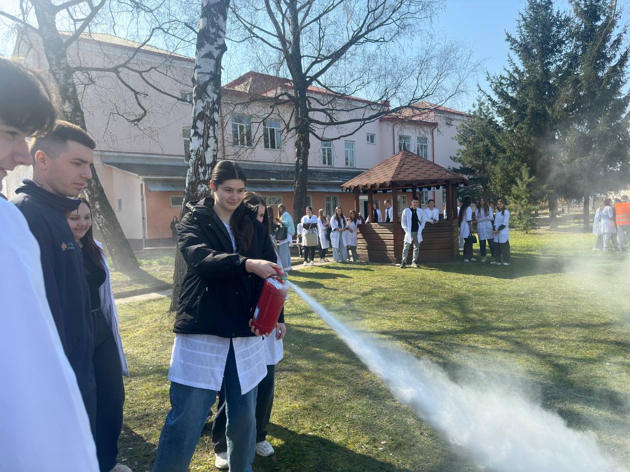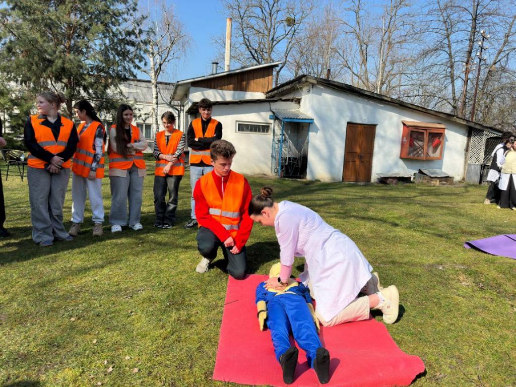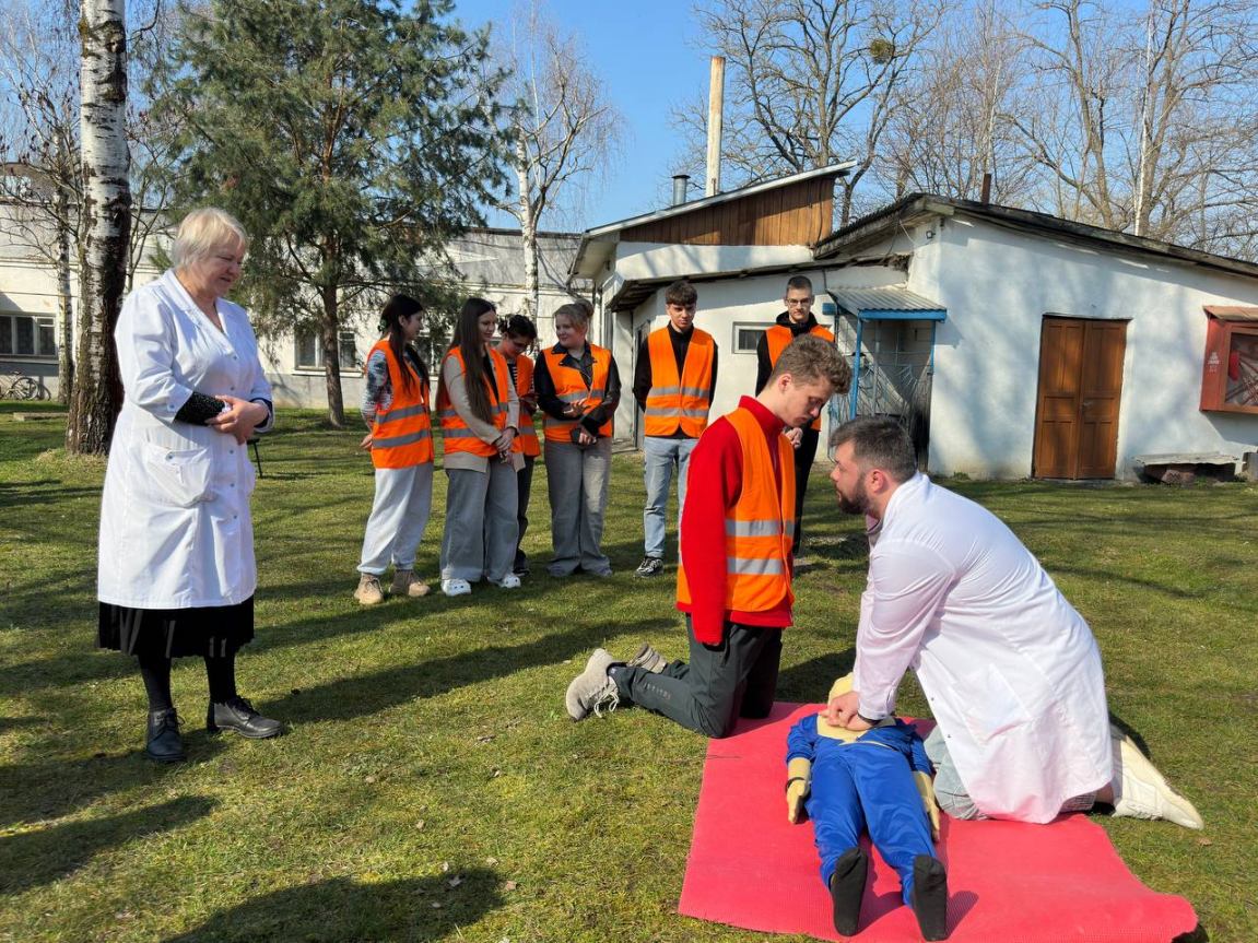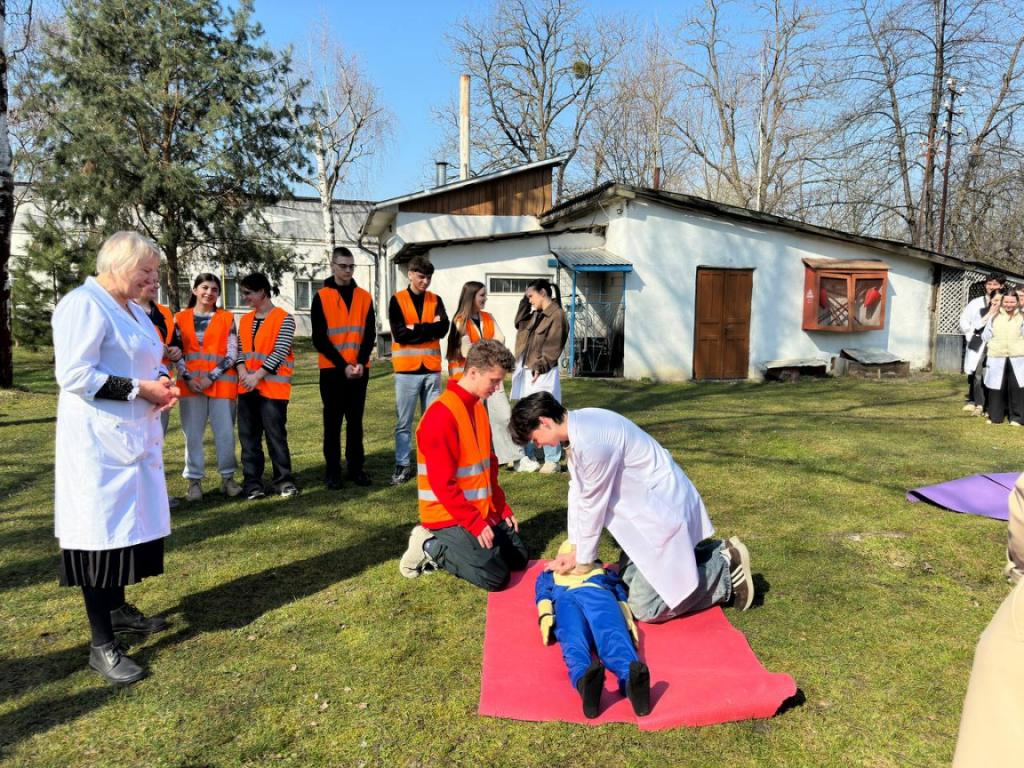 З метою підвищення рівня знань здобувачів освіти та персоналу з питань пожежної та техногенної безпеки, порядку дій при виявленні вибухонебезпечних предметів та правил безпечної поведінки, а також відпрацювання злагодженості дій при здійсненні евакуації та з метою популяризації професії рятувальника та здійснення професійно-орієнтаційної роботи серед студентів та у рамках проведення Дня цивільного захисту 24 березня 2026 року у Вашковецькому медичному фаховому коледжі, керівником цивільного захисту коледжу Дмитром Макарою проведені об’єктові навчання і тренування з питань цивільного захисту із залученням рятувальників 18 ДГТРЧ 1 ДПРЗ та Вижницького РВ ЦЗ та ПД Головного управління ДСНС України у Чернівецькій області та спеціальний аварійно-рятувальний автомобіль. Студенти-гуртківці під керівництвом Наталії Сащук продемонстрували майстер — клас по наданню домедичної допомоги під час надзвичайних ситуацій.