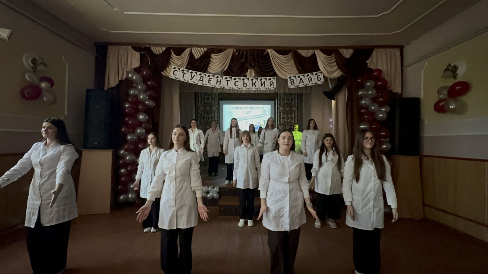 В залі звучали пісні, танці, жартівливі сценки та конкурси, панувала атмосфера справжнього студентського вайбу.
